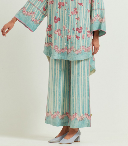 أُوكَازيُونبنطلون بالازو بخصر مطاطي مع بلوزة مكشوفة الكتفين