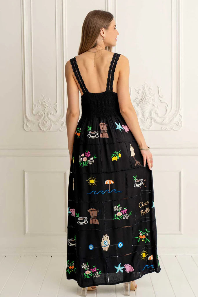 كوستا أمالفيتانا ماكسي تحفة فنية بحد ذاتها، ومن المؤكد أنها ستكون المفضلة هذا الصيف! مستوحاة من نمط الحياة المتوسطي المشمس وتراثه الغني، سينقلك ماكسي من مقاهي إيطاليا الصغيرة الساحرة إلى أساطير وعجائب اليونان الساحلية. مع أكثر من 50 لوحة مطرزة، جميعها مُجمّعة بتقنية الكروشيه التقليدية، لتُشكّل دانتيلًا شفافًا رقيقًا يُضفي لمسةً من الرقي والأنوثة في كل خطوة. مع ظهر مُكشكش لملاءمة مثالية وجيوب جانبية لراحة تامة. متعددة الاستخدامات بلا حدود، سواءً كنتِ تستكشفين سوقًا مزدحمًا أو تستمتعين بقضاء أمسية رائعة، ستُحوّل هذه القطعة من النهار إلى الليل بسهولة، وتضمن لكِ حركةً أنيقةً وعفوية. نسّقيها مع أحذية بكعب عالٍ مريحة لإطلالة نهارية، أو مع أحذية بكعب عالٍ ومجوهرات فاخرة لقضاء أمسية رائعة مع الأصدقاء. استعدي لتلقي الإطراء في كل خطوة!