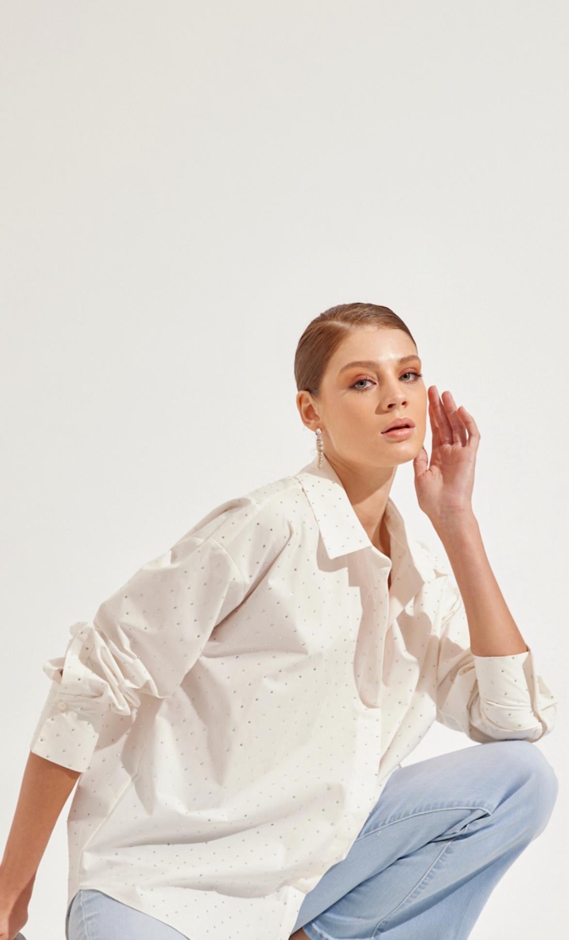 بلوزة كبيرة الحجم مزينة بالكريستال