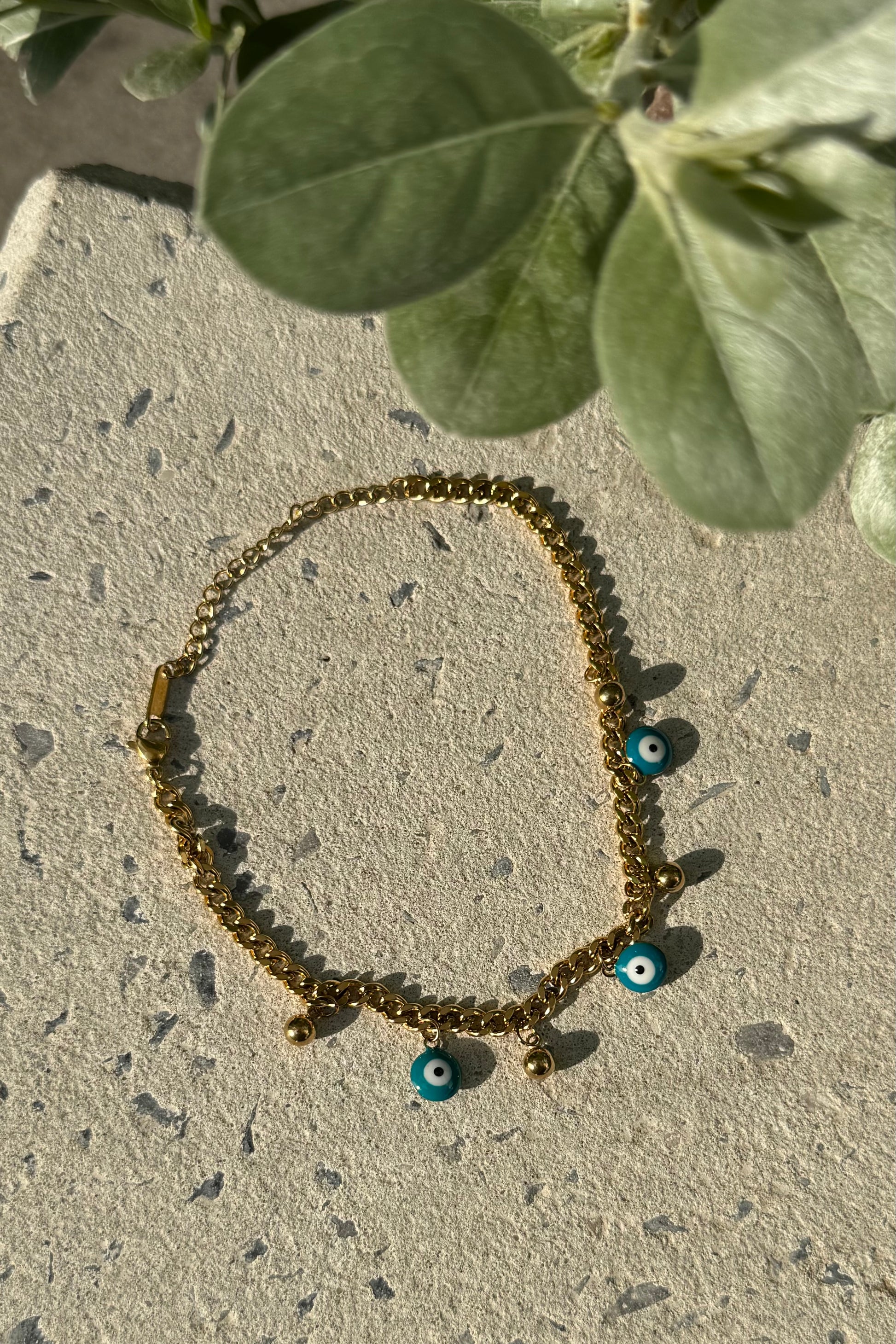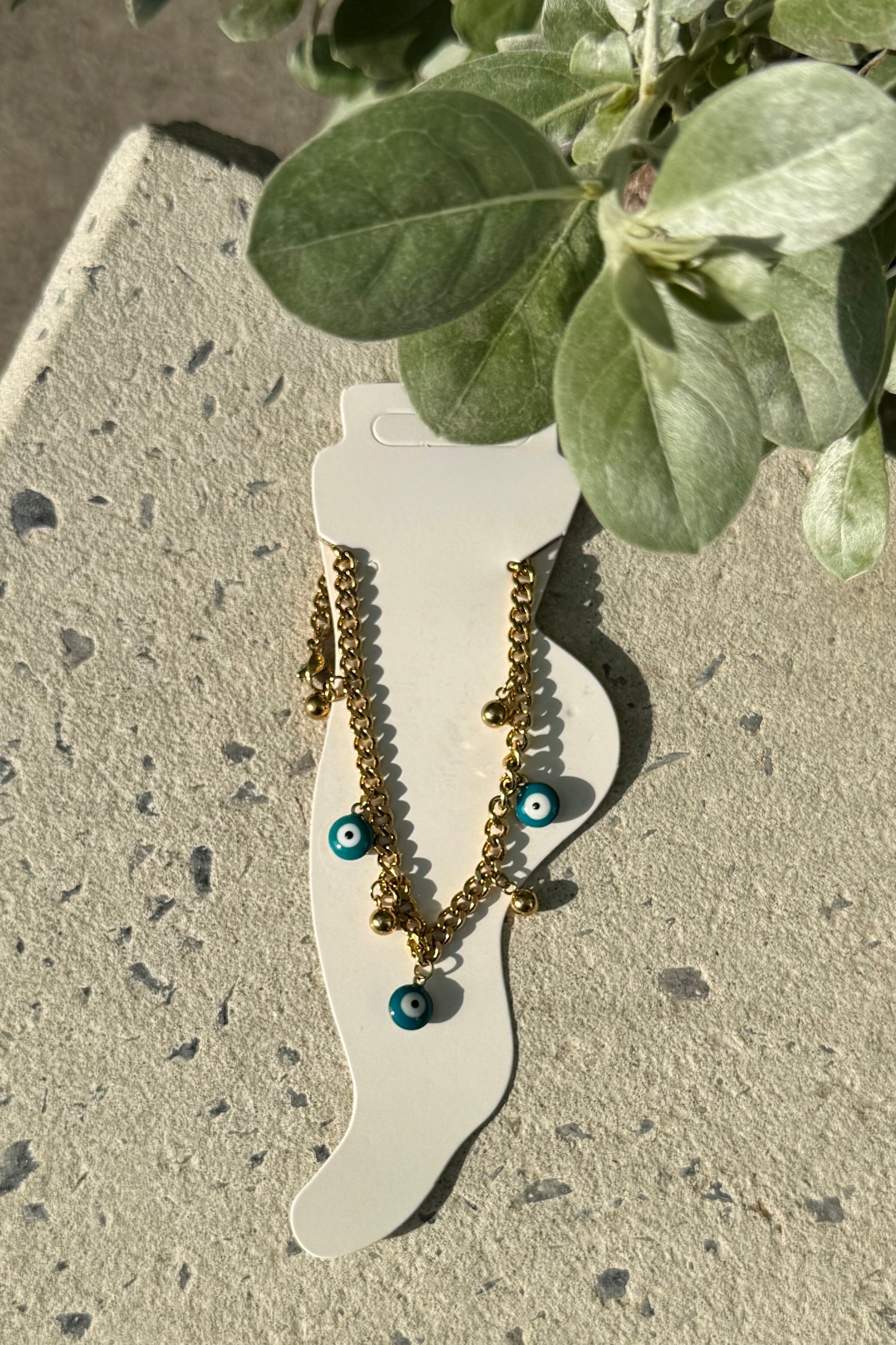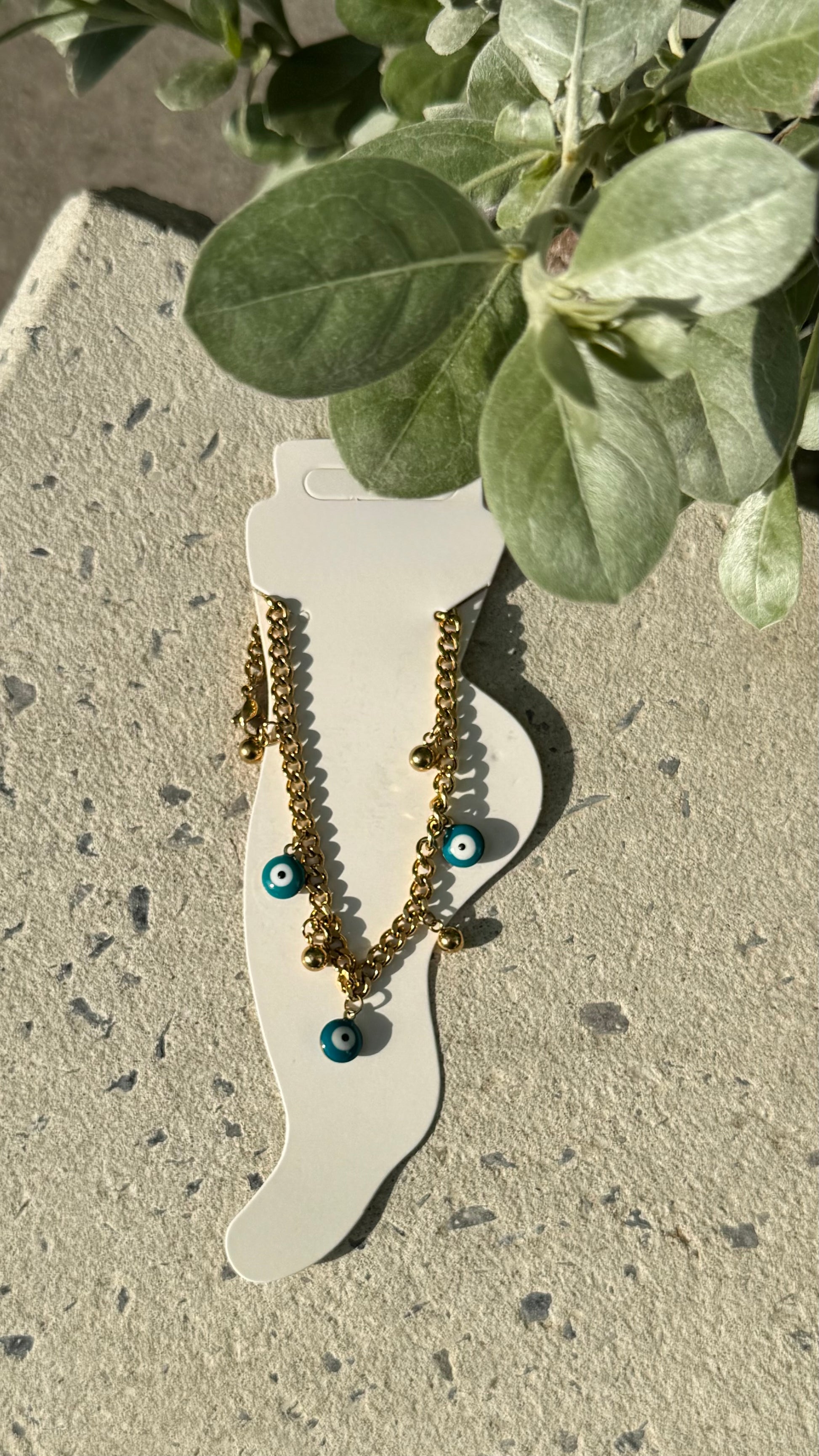 نقدم لكم خلخال عين الحماية، مزيجٌ رائعٌ من الأناقة والرمزية. مصنوعٌ من سلسلة ذهبية رقيقة، يتميز هذا الخلخال بحليات عين الشر الفيروزية الزاهية التي يُعتقد أنها تجلب الحماية والطاقة الإيجابية. تصميمه الجذاب يجعله إكسسوارًا مثاليًا لأيام الصيف على الشاطئ أو للنزهات غير الرسمية. خفيف الوزن وقابل للتعديل، يُزيّن كاحلكِ بشكل مريح، ويضيف لمسةً من السحر والأناقة إلى أي إطلالة.