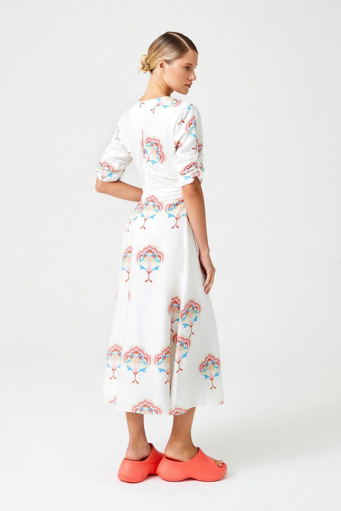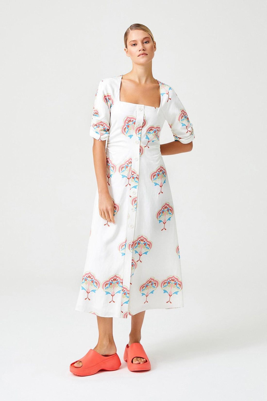 فستان من الكتان بنقشة نسيم الأزهار بأزرار