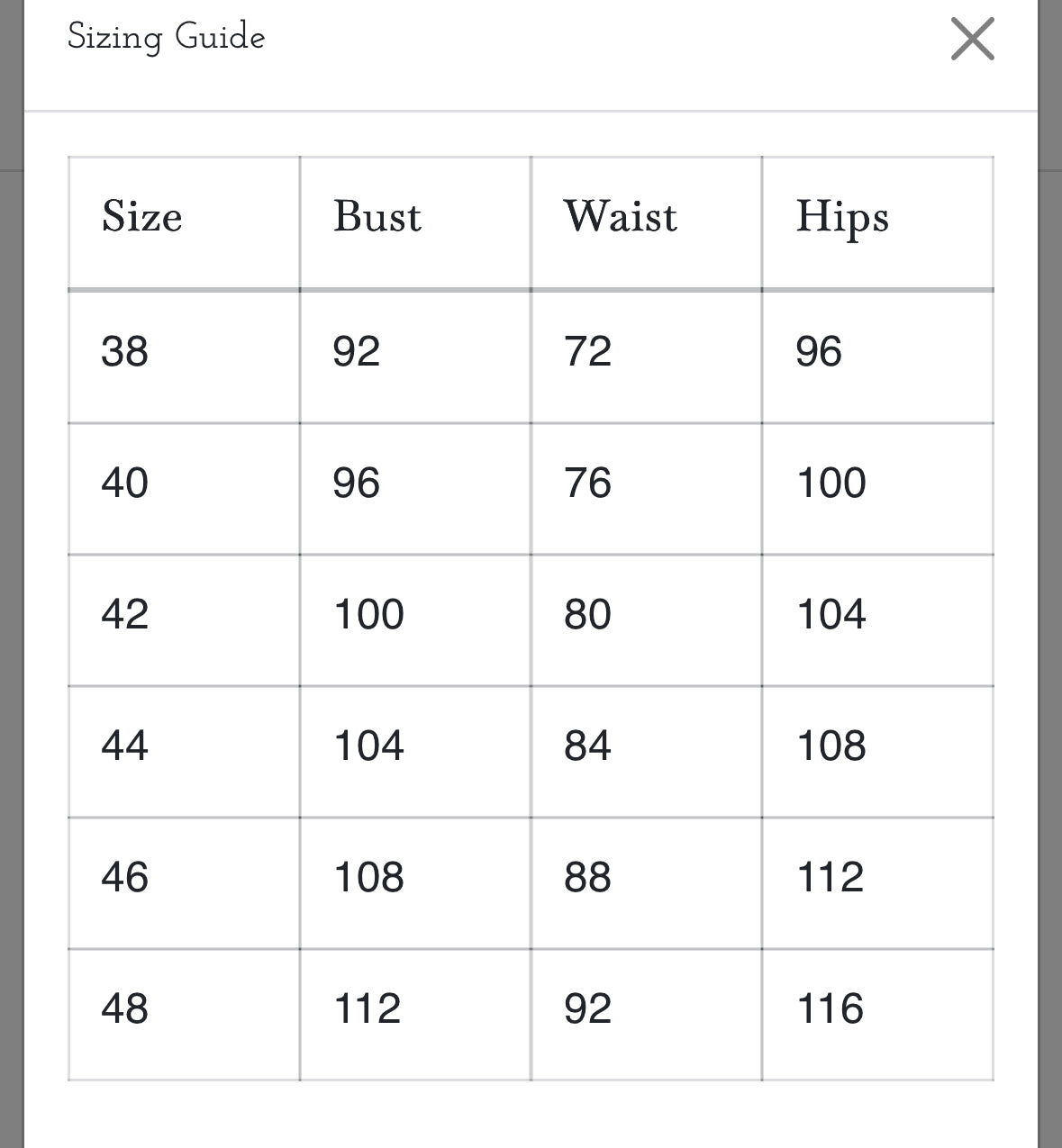 | Size | Bust | Waist | Hips | Bust Point Length | Waist Length | Shoulder |
