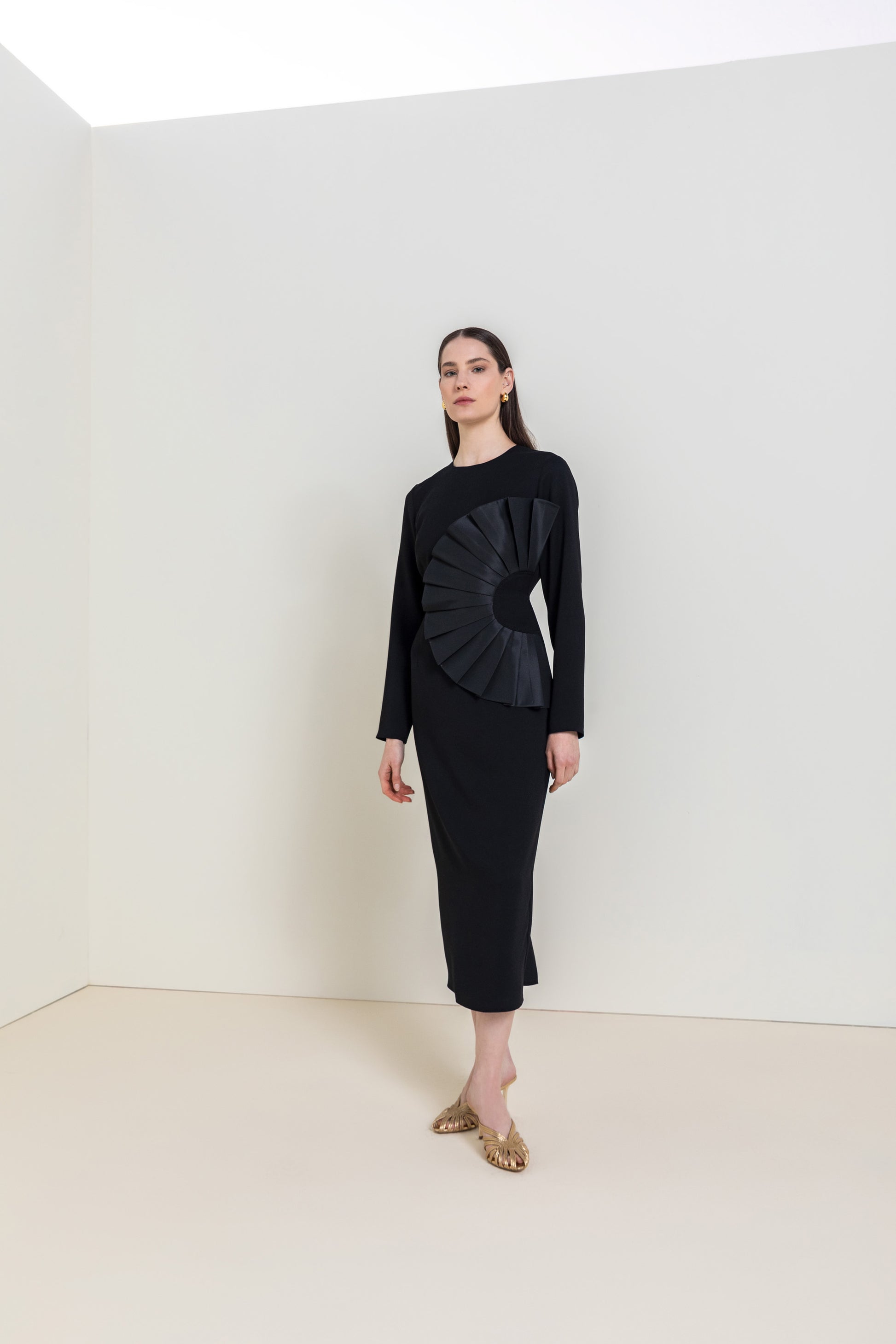 فستان ميدي بتفاصيل نحتية