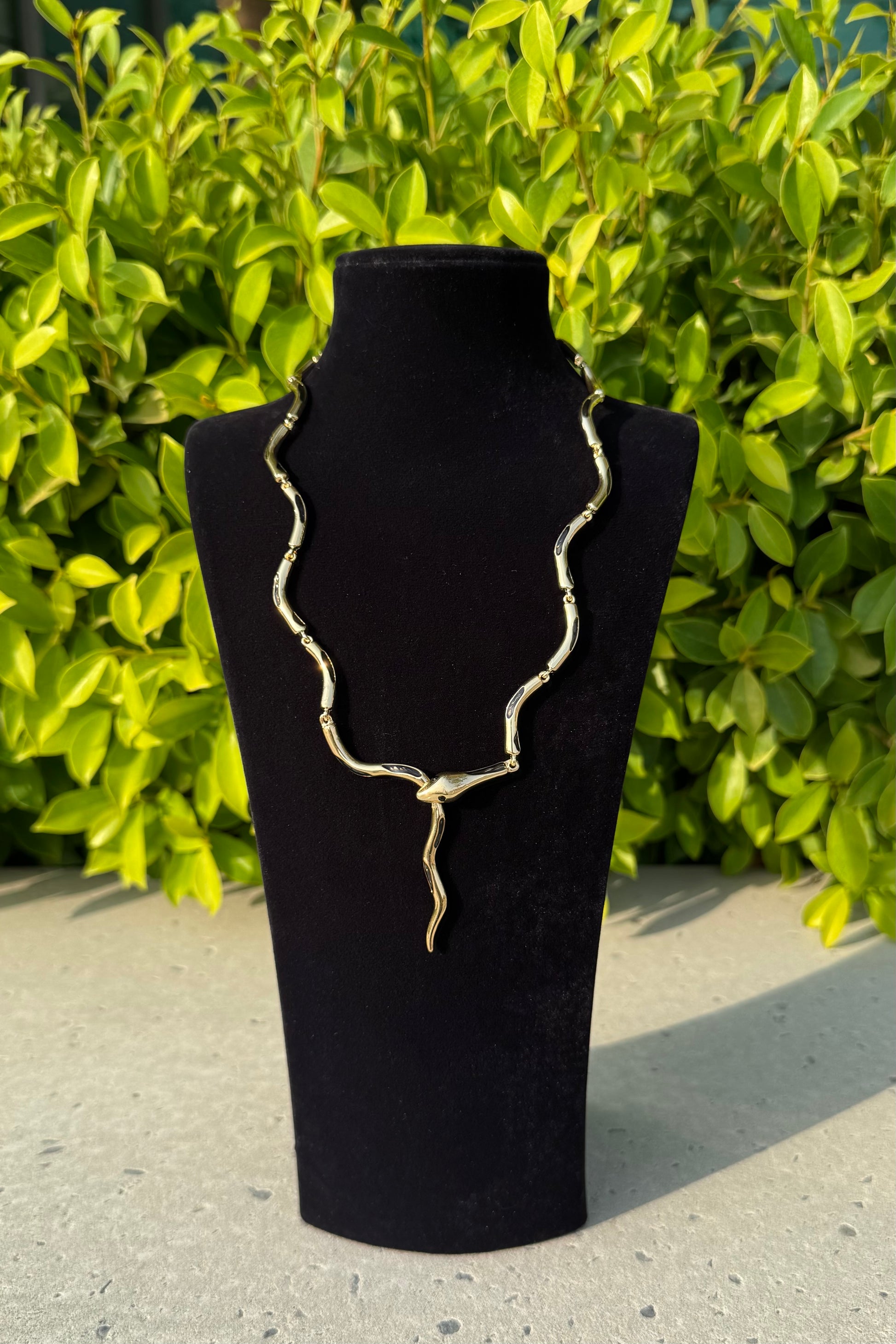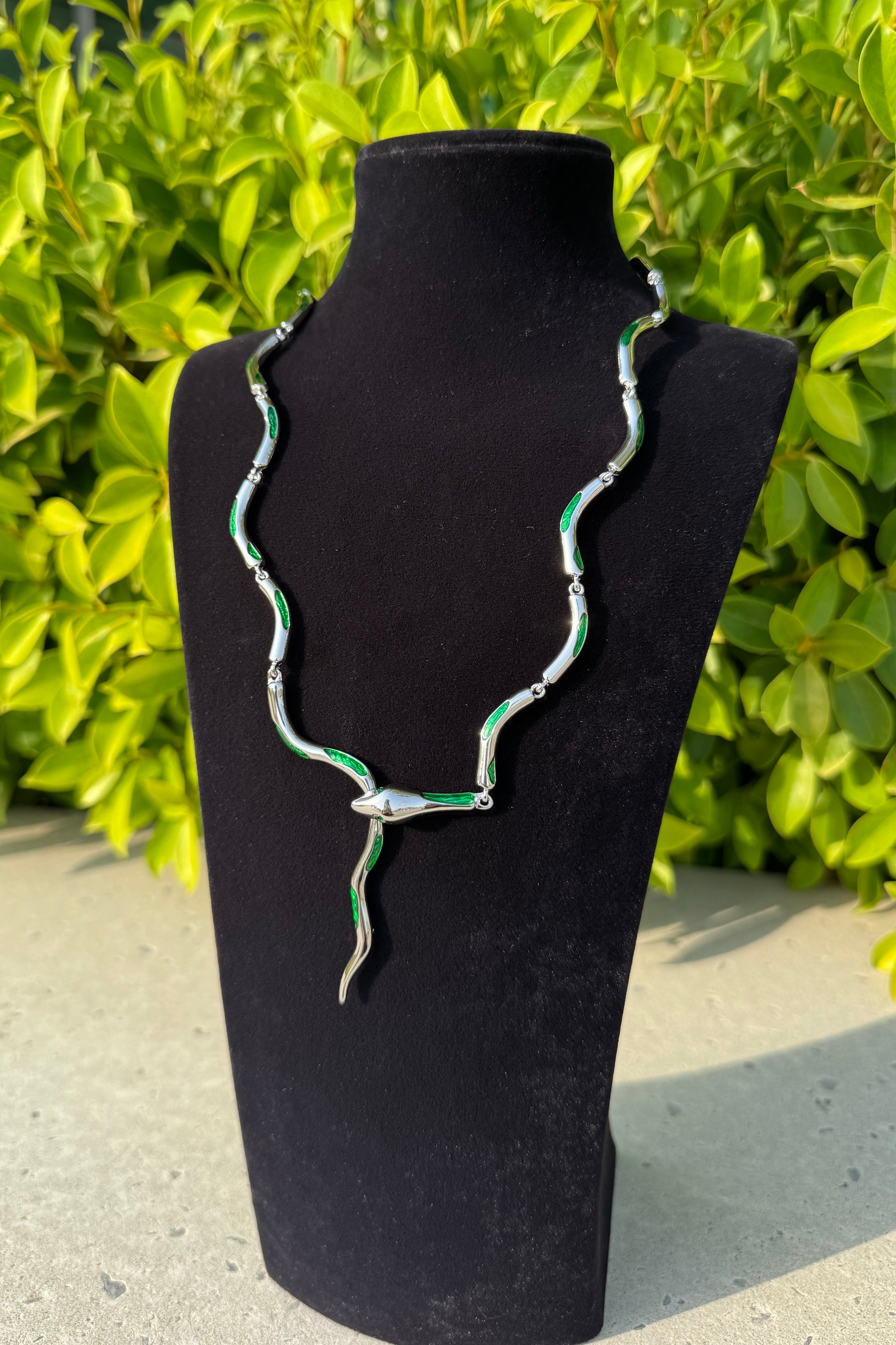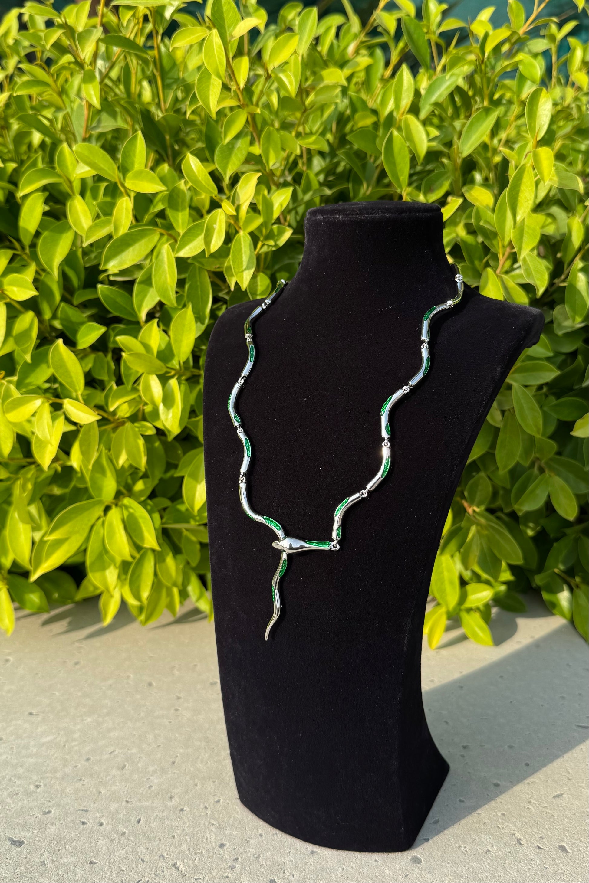 تألقي بأسلوب جريء وآسر مع قلادة "سيربنتين إليجانس". تتميز هذه القطعة الرائعة بتصميم فريد يشبه الأمواج، مصنوعة من مواد عالية الجودة تتألق مع كل حركة. متوفرة بلونين رائعين: ذهبي أنيق وأخضر نابض بالحياة، لتضفي القلادة لمسة من الرقي على أي إطلالة. مثالية للمناسبات الرسمية وغير الرسمية، هذه الإكسسوارات المميزة ضرورية لمن يقدرون الإبداع والتفرد في مجوهراتهم.
