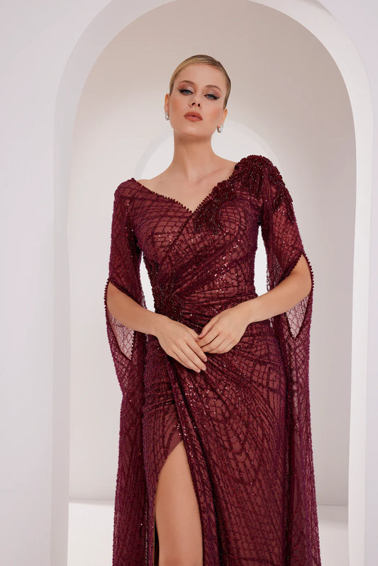 MAGENTA SEQUIN PLEATED STRAPLESS DRESS
