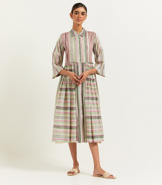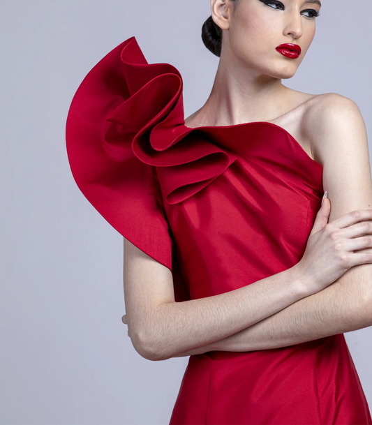 ONE SHOULDER METALLIC DRESS WITH CUTOUT WAIST