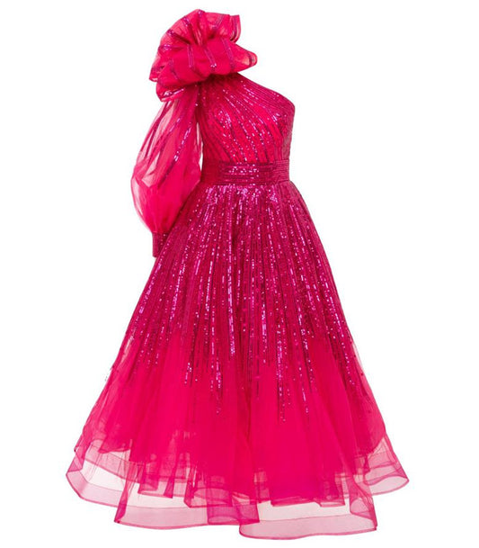 ON SALEDRAPE SLEEVE ONE SHOULDER GOWN