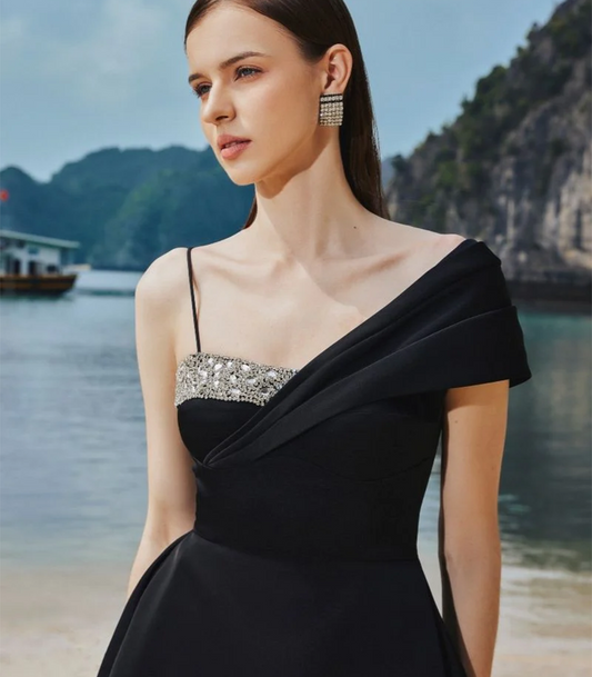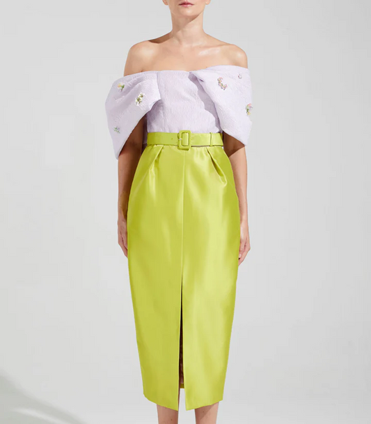 Charlotte A-line Asymmetric Taffeta Midi Dress