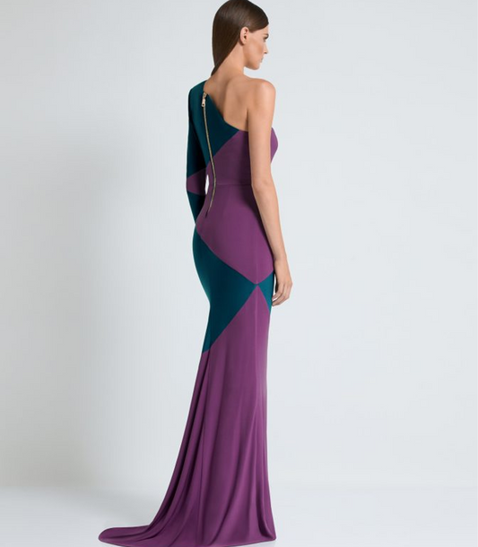 BORDEAUX ONE SHOULDER SEQUIN SHEETED DRAPED GOWN