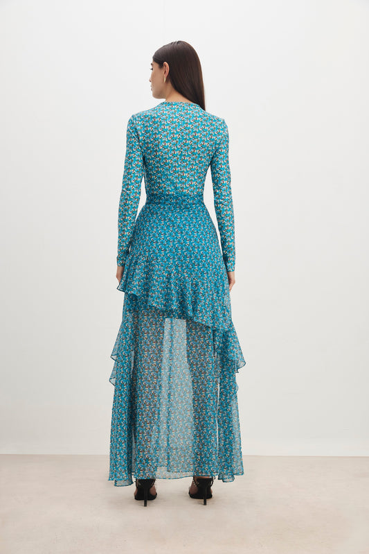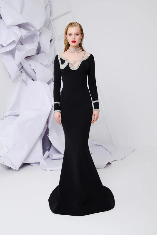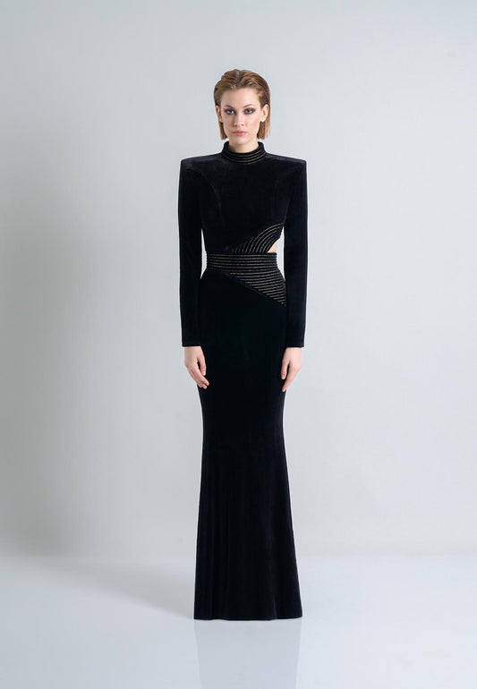 LONG SLEEVE LONG DRESS WITH CUT OUT BACK DETAIL AND SLIT