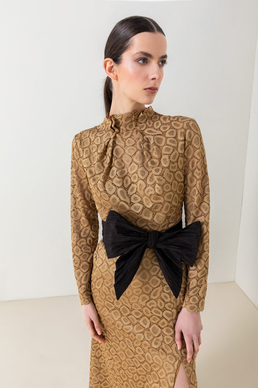 Golden Grace Bow-Tie Midi Dress