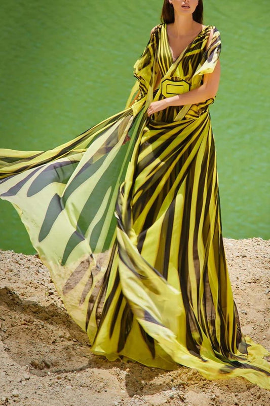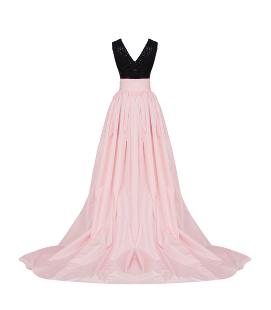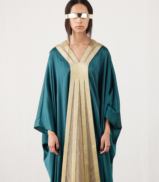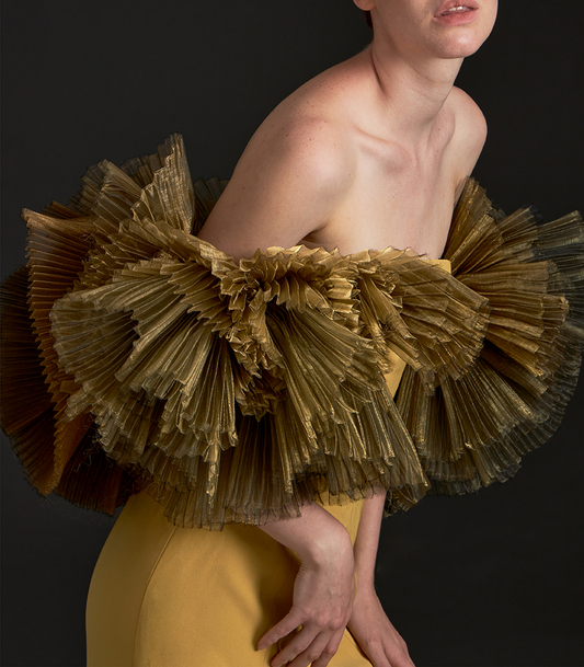 PLEATED CAPE-EFFECT DUCHESS DRESS
