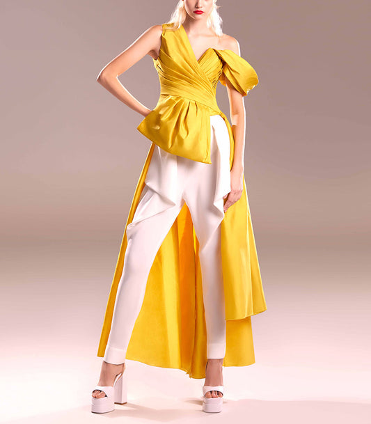 ONE SHOULDER DRAPED SEQINED JUMPSUIT