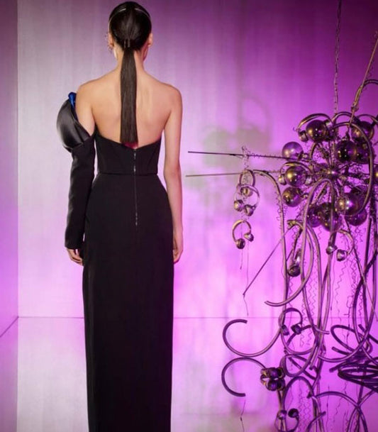 ONE SHOULDER METALLIC DRESS WITH CUTOUT WAIST