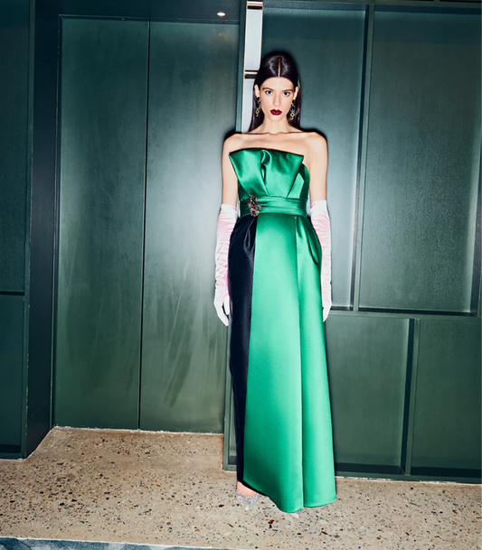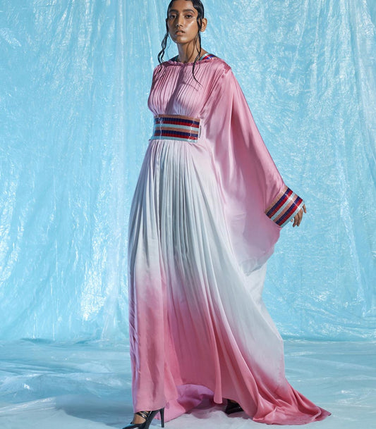 MAGENTA SEQUIN PLEATED STRAPLESS DRESS